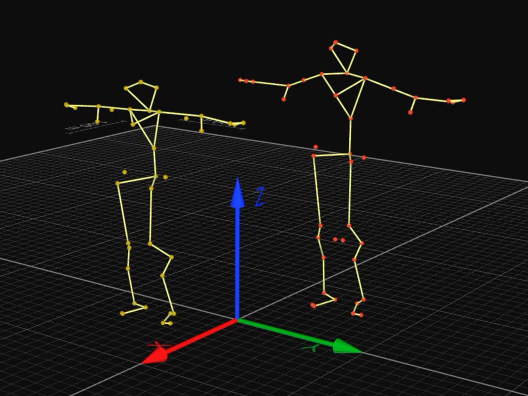 The model contains the marker labels and the spatial relationships between markers throughout the recorded movement. It also stores the colors of the markers and the visual bones connecting them.