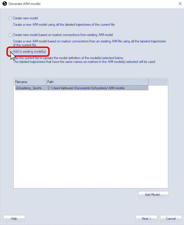 An AIM model can also be trained with additional measurements—for example, using different subjects or movements. Adding new trials to an AIM model helps generalize it so that it can be applied to a wider variety of measurements.