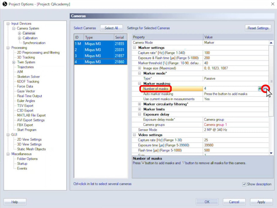 To easily delete the masks from all the cameras at once, return to the “Cameras” page in Project Options.