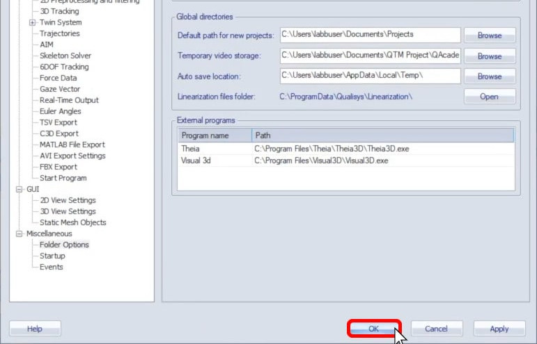 Before running the module, check that QTM knows the locations of the external programs it will be launching.