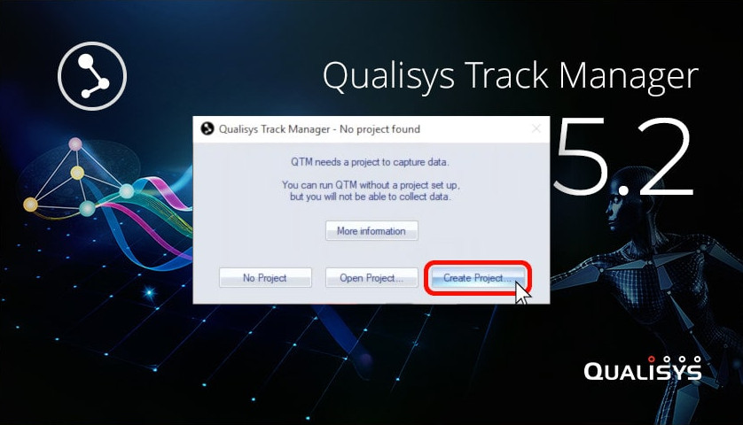 The first step after opening QTM is to create a project, which is the folder where your settings and data will be stored.