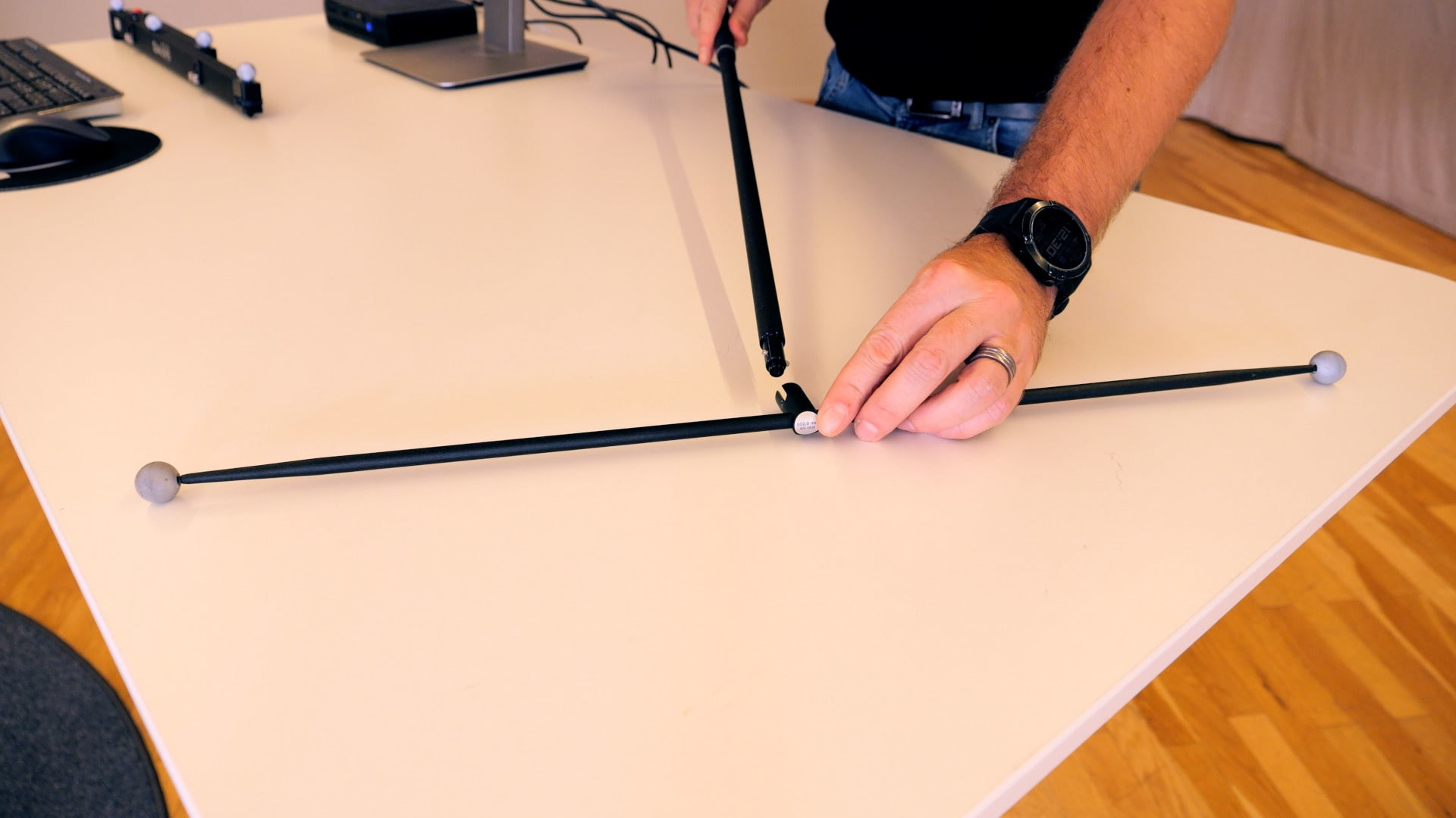 Qualisys offers a range of calibration kits, which consist of an L-shaped reference object and a wand with markers affixed to them. The precise measurements of the L-frame and wand are necessary for an accurate calibration, so please handle both objects with care, and keep them in their case when not in use.