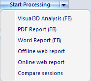 Once the minimum number of files has been recorded, the Start Processing button can be used. Click the button to run the default processing step. Depending on the PAF module, there may be multiple processing steps. Click the triangle on the button to show all processing steps. The default processing step is topmost in the list.