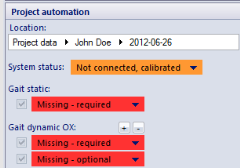 When a session has been selected, colored buttons appear in the Project automation area: