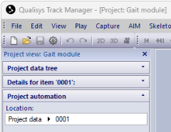 The Project automation area shows contents depending on the selected item. If the selected item is a session, this area shows buttons that correspond to files and the Go button for data collection.