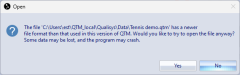 Opening a file with a newer format with an incompatible version of QTM may corrupt it.