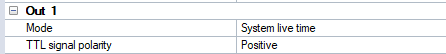 Use the following settings for the used port Out 1, Out 2 (or Synchronization output for Oqus cameras):