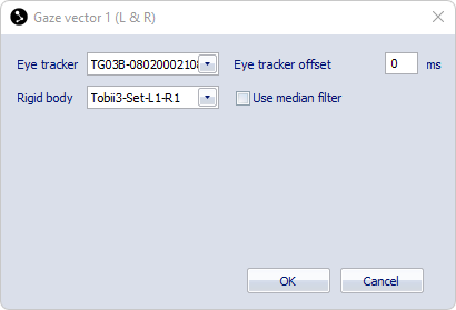 Click on Add to add a new gaze vector. The gaze vector includes the definition for both left and right eye.
