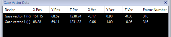 The Gaze vector data is displayed in the 3D view of the window as a vector, for example color and length can be modified on the 3D view settings page in Project options.