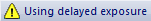 To activate the exposure delay, select Camera group or Advanced on the Exposure delay mode setting. When the delayed exposure is activated Using delayed exposure is displayed in the Status bar. The delayed exposure setting is displayed in each camera's 2D view, e.g. expgrp: 1 when the camera is in exposure group 1.