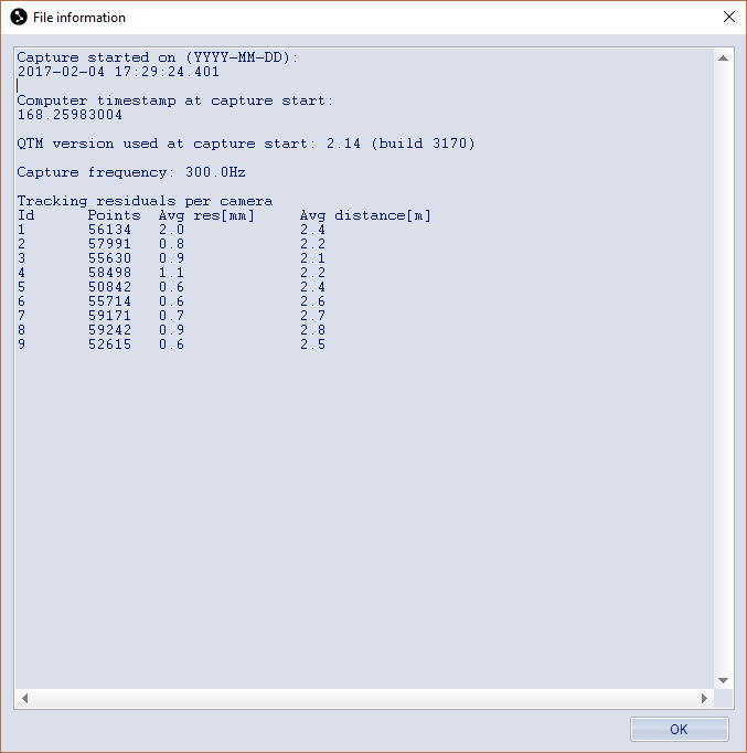 QTM version used for the capture.