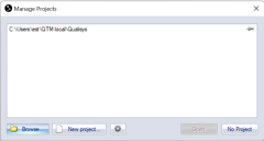 Once you have created one or more projects on the computer, QTM will open by default with the Manage projects dialog to select a project. For more information about the dialog see chapter Manage projects.