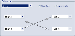 The Magnitude means that the result is shown as the length of the vector made up of the three components. For Position this means the distance in mm from the origin of the coordinate system and for Velocity this means the speed (in mm/s) of the trajectories. For Acceleration it does not have a separate name, it is simply the magnitude of the acceleration. For Distance, the magnitude is probably the result that is most appropriate, since it is the actual distance between the two trajectories. - For Angle and Angular velocity, the Components means that the angle is projected onto the three perpendicular planes (YZ, XZ and XY respectively), while the Magnitude is simply the angle between the two arms.