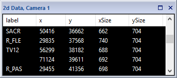 The data for the current frame can be viewed in the Data info windows. There can be three Data info windows open at the same time, so that different types of data can be displayed. Open the windows by clicking Data info 1 to Data info 3 on the View menu. Use Ctrl+D to toggle the display of the Data info 1.