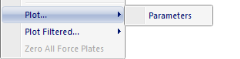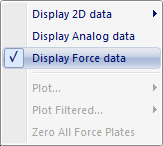 Click Display Force data in the Data info window menu, to show the force data for all force plates in the Data info window.