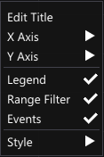 The Plot menu contains the settings and layout options of the plot. It can be accessed by right-clicking anywhere in the Plot window.