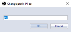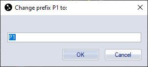Change the prefix for all trajectories with the same prefix as the selected trajectory. Note that the prefix separator must be an underscore so that QTM can detect what to change. In the dialog replace the current prefix with the new prefix. Do not add an underscore at the end. -