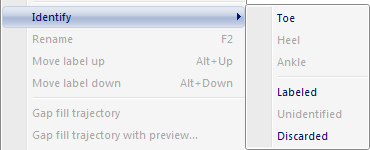 Delete the selected trajectories or parts. If you delete a trajectory in the Labeled trajectories window, it is moved to the Unidentified trajectories window. More information see chapter Delete trajectories. -