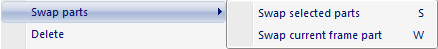 Swap parts between two selected trajectories, see chapter Swap parts.The parts that are swapped must not overlap any other parts in the trajectories.