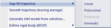 Fill gaps of selected trajectories using kinematic gap filling based on current skeleton data. The selected trajectories must be included in a skeleton definition.
