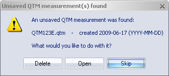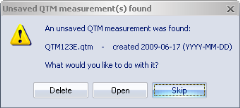 The measurement can be saved automatically directly after the data is fetched with the Auto backup option on the Processing page in the Project options dialog. When activated a temporary file with the 2D data is saved before the other processing steps. If the file is very large the auto backup may take several minutes. Then if QTM crashes during the processing of the data the file can be retrieved at the next startup of QTM.