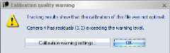 If residual check is exceeded when a file is tracked after a measurement, there is a warning describing the error. For example if one of the cameras exceed the limit you will get the warning below.
