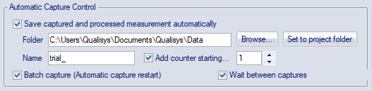 Under the Automatic capture control heading there are options for automatic saving of measurement files and whether to use batch capture.