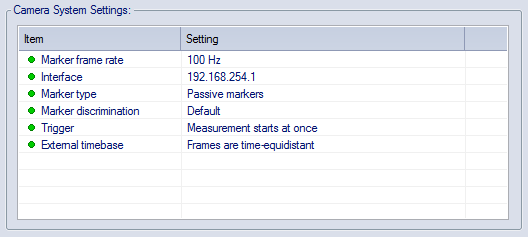 Under the Camera system settings heading the measurement settings are displayed. The settings can be changed by right-clicking on the entry and then click Change or Reset to default value. The Project options dialog can also be reached by clicking Options.