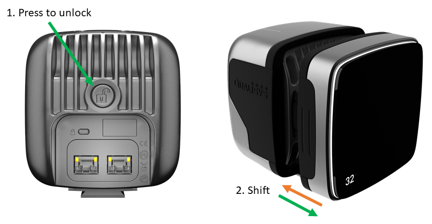 Press and hold the Strobe unlock button at the backside of the Arqus camera.