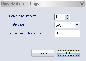 Select the camera to linearize as the only camera in the 2D view before starting the linearization. The camera number in the dialog will be automatically set to that camera.