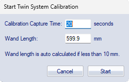 In this dialog you can change the QTM files and wand length used for the Twin System calibration.