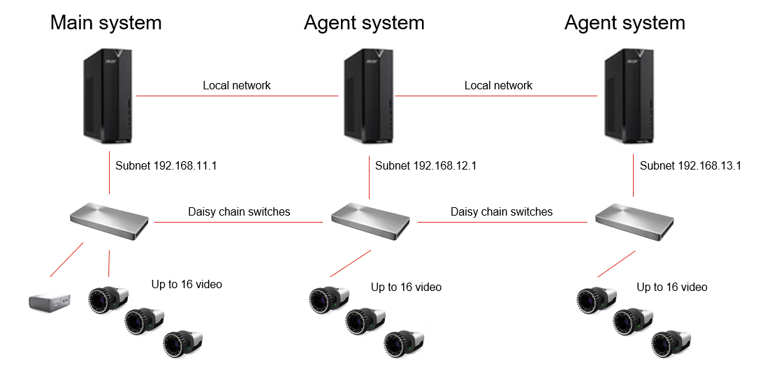 - The other systems will be Agent systems and must not have any Camera Sync Unit connected in the system.