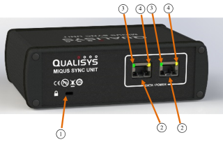 Lit green when the Sync unit is powered on. An additional orange LED is lit when a Gigabit link is established. -