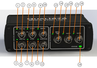 Input for creating events in QTM. The base voltage of the port is 5 Volt (high). -