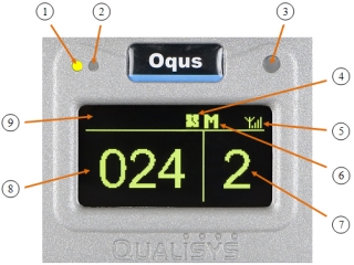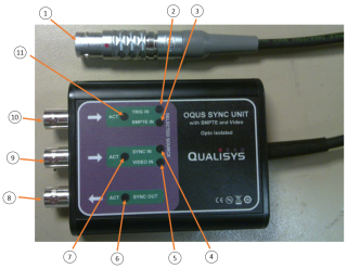 The Oqus camera has a large graphical OLED display and three LEDs on the front to inform the user of the current status of the camera. The display shows, among other things, the camera number and the number of markers currently seen by the camera.